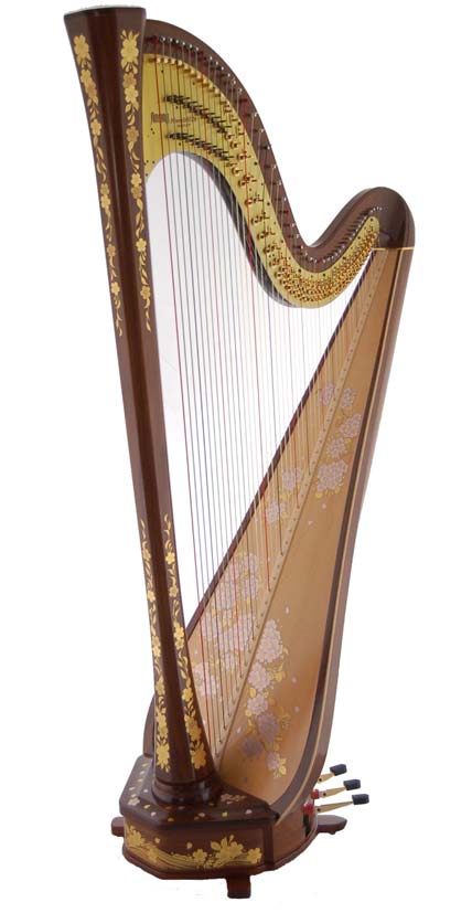 Культовая концертная арфа Aoyama Princess Sakura 47 F достойна самых выдающихся и требовательных музыкантов. Изысканная роспись розовыми и золотыми цветами сакуры по поверхности орехового дерева превращают этот инструмент в настоящее произведение прикладного искусства. Но у Принцессы Сакуры не только прекрасное лицо, но и содержание –