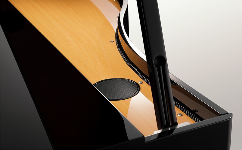 Короткая и длинная штицы позволяют использовать крышку в двух режимах – полного и частичного открытия. Несмотря на полноценный рояльный облик, DG30 – относительно компактный инструмент: его глубина составляет всего 87 см, то есть, он с лёгкостью поместится туда, куда невозможно было бы поставить акустический рояль.
