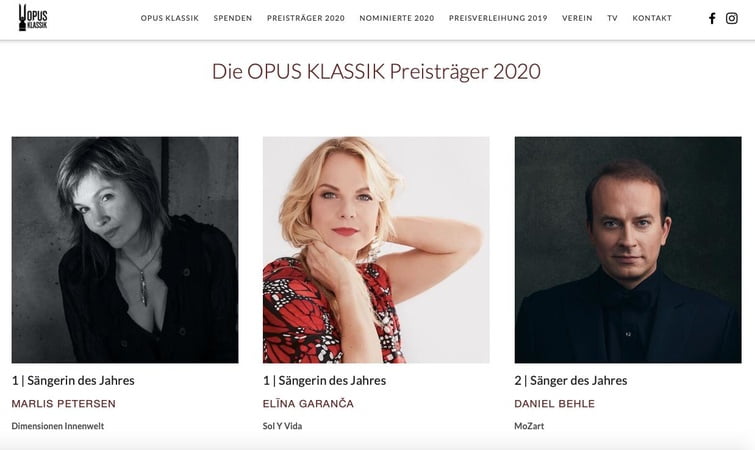 Немецкая колоратурная сопрано Марлис Петерсен стала лауреатом престижной музыкальной премии Opus Klassik в номинации «Певица года» за сольный диск “Dimensionen” («Измерения»), записанный на большом концертном рояле Steingraeber E-272. Церемония награждения состоялась 18 октября в Берлине.