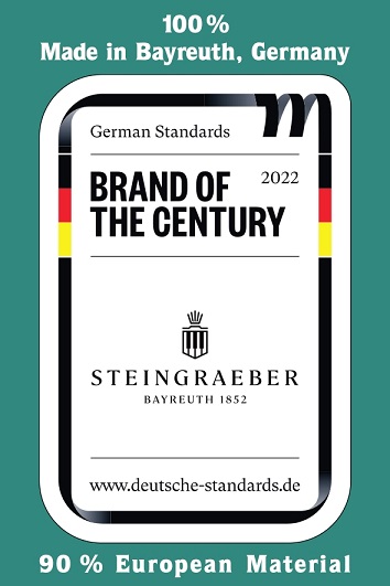 Мы рады сообщить, что с 2022 года фортепианный бренд Steingraeber признан «Брендом века» и входит в эксклюзивный круг выдающихся немецких марок с мировым именем, таких как Faber-Castell (карандаши и товары для художников, канцелярская продукция), Meissen (знаменитый мейсенский фарфор), Ritter Sport (всеми любимый шоколад).