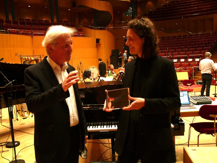 На фотографии младший директор Фанни Штайнгребер и немецкий композитор-классик Роберт Платц (Robert HP Platz) с наградой “Germany’s Favourite” в Кёльнской филармонии. На заднем плане рояли-победители из дома Штайнгребера в Байройте.