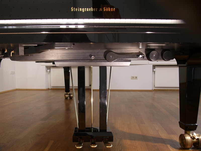 Инструменты Steingraeber & Söhne демонстрируют, что дух инноваций в фортепианостроении всё ещё жив. И хотя эффект сурдины и Моцарт-педаль основаны на базовых механизмах, которые использовались в конструкции пианино, очень здорово видеть их сегодня в концертных роялях. Например, сурдина – это грубый эквивалент третьей педали-модератора в пианино, а Моцарт-педаль имитирует функционал левой педали, которую можно встретить в некоторых старых пианино.